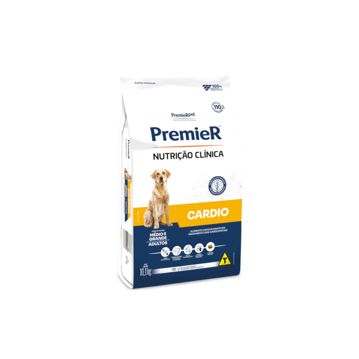 PremieR Nutrição Clínica Cardio Cães Portes Médio e Grande é um alimento coadjuvante indicado para cães adultos de portes médio e grande com doença/insuficiência cardíaca.